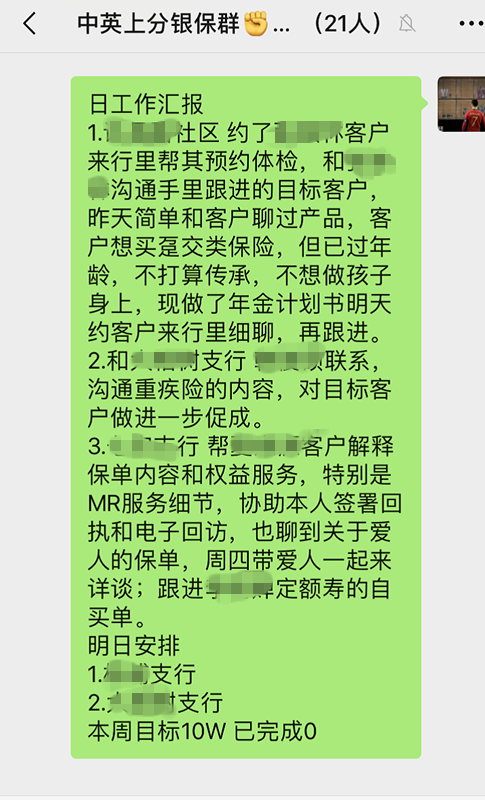 我2018年11月进入中英的兴业银行项目,用了一年多的时间从学习产品培训,到学习筛选目标客群的方法,从KYC客户的痛点和需求,再到每场银行活动的策划。我会抓住每一个合作的机会来建立公司与个人的口碑和信任。在渠道内最大的成就感来源于“你很靠谱”,除了该做的这些,我还会从多个维度去想一些新的营销思路指导新入职的理财经理,比如我会主动去了解兴业银行的团险服务,这个是很多行员都会忽略的地方!我会问行员”兴业银行福利很好,那你知不知道“自己每年的医疗报销额度是多少?”“你们的重疾保险又是多少”,大多数的行员都是不知道的。我会告诉她们答案,通过他(她)们自身的利益关系,疏导专业知识,保险种类和保额,看他(她)们是否需要合理的做补充,他(她)们会更愿意听,一方面可以挖掘直销单,另一方面,也是变相的指导了他们如何为自己的客户挖掘需求的方法,完全可以用自己举例做切入,这样并不生硬的话术会显得更自然,让很多行员也更容易接受。所以我总结的是努力的方法有很多种,能否想在客户的问题前面才是至关重要,就好比在餐厅里当我们的茶还有1/5的时候,一个需要招手示意加茶,另一个不需要提醒就会时不时加茶的服务,对于客户的体验度,感受度会截然不同。