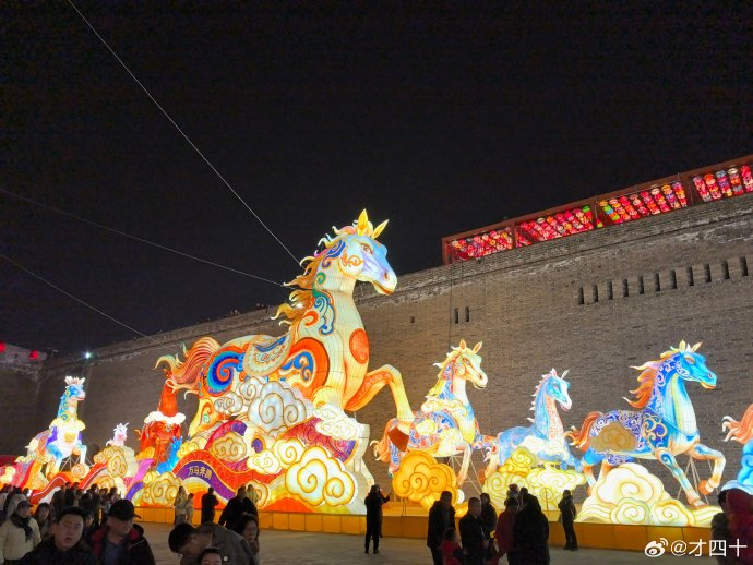 大同古都灯会以古城墙与历史文化空间为依托,将灯光艺术嵌入古都肌理之中,形成了具有北方气质的元宵夜游景观。雄浑厚重的城市风貌与灯会场景相结合,使其在一众项目中形成鲜明风格。