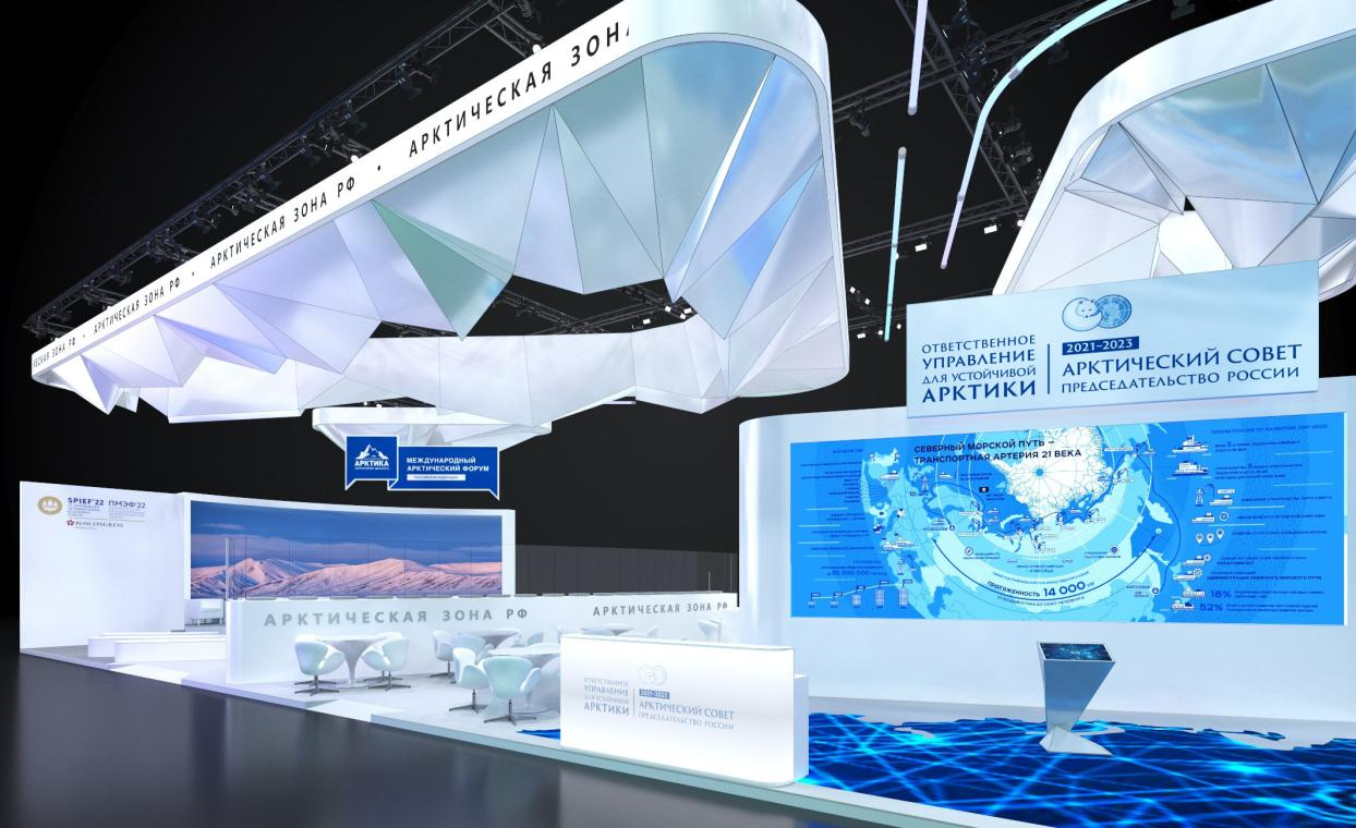 展区位于圣彼得堡国际经济论坛展览中心G馆一楼,总面积300平方米。它将分为几个区域,最重要的功能区域是演讲厅和文件签署区。此外,该展区还给观众提供了一个酒吧、一个网络区域,以及专门展现北海航线、俄罗斯担任北极理事会主席国以及其他主题的展示空间。
