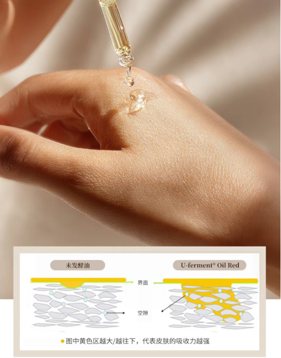 Terrake天芮通过U-ferment Oil Series微生物发酵科技将脂类成分与天然植物油深度融合发酵,让油脂分子变得更为微小细腻,质地轻薄如呼吸般无负担,既能快速渗透肌底传递营养,又不会在表层残留黏腻感。无水配方设计,既避免了水分稀释有效成分,又能凭借发酵油脂的原生锁水力,实现长效锁水,彻底打破“油养肤只适合干皮”的刻板认知,让干性、油性、混合性及敏感肌都能适配,真正实现全肤质友好的“油养”体验。