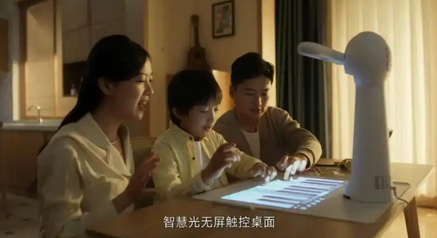 根据中国质量认证中心(CQC)颁发的证书,其产品符合国标要求,光度等级达到AA级照度标准,符合读写作业台灯性能要求。产品摒弃传统屏幕设计,通过漫反射投影,在桌面投出23英寸的无屏触控区域,彻底告别电子屏幕直射光。经权威检测机构认定,其蓝光危害等级为RG0(无危害类),无蓝光、无频闪。这种接近自然光的柔和漫反射,搭配其双翼灯光设计,共同构筑了符合光生物安全的“健康光环境”,让孩子能够长时间专注探索,而无需担心视力受损。