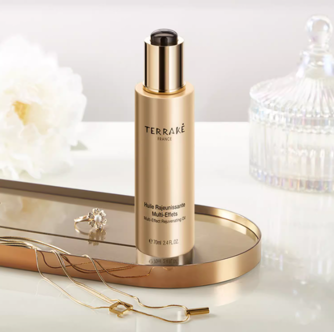 Terrake天芮多效奢护焕颜精华油融合多种脂类成分与天然植物油,并采用前沿的U-ferment Oil Series微生物发酵科技,重构“油”的形态,令其分子结构更小,质地轻盈,触肤即融,将润养成分层层沁入肌底。即便秉持无水配方的精纯理念,亦能实现长效锁水,体验润而不腻、通透畅快的奢护感受,让肌肤回归至为舒适的本真状态。