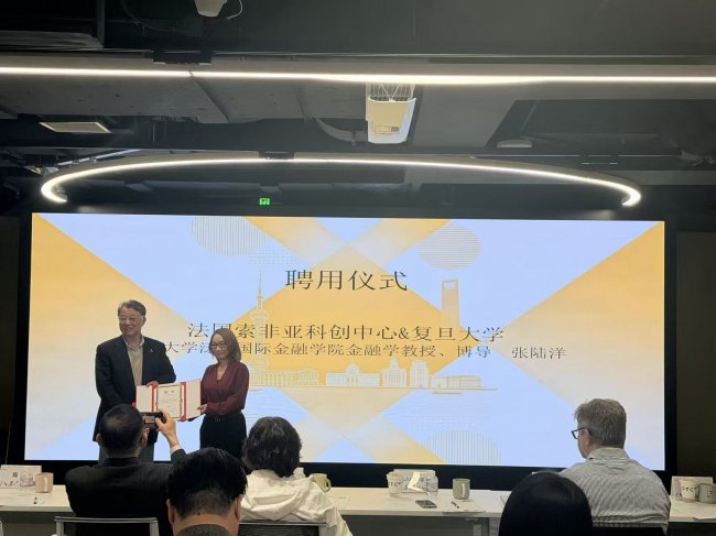 活动现场,复旦大学金融学教授、知名风险投资专家张陆洋受聘为法国索菲亚科创中心中方名誉顾问,聘书由科创中心副会长刘静颁发。